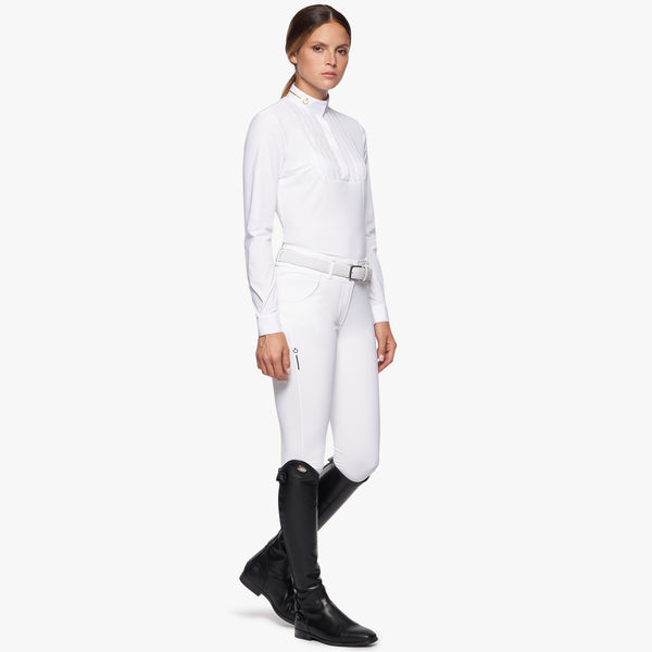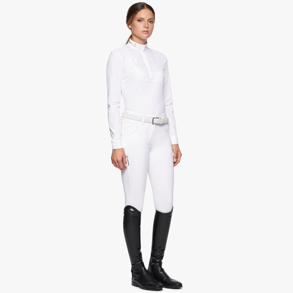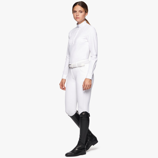 The REVOLUTION women's shirt offers maximum performance in every respect: elegance and functionality in maximum expression. The design features a rubberized logo on the collar and laser-perforated details on the shoulders. Breathability, antibacterial and quick-drying thanks to the perforations and technical fabric make this item perfect for use in competition