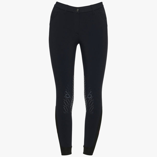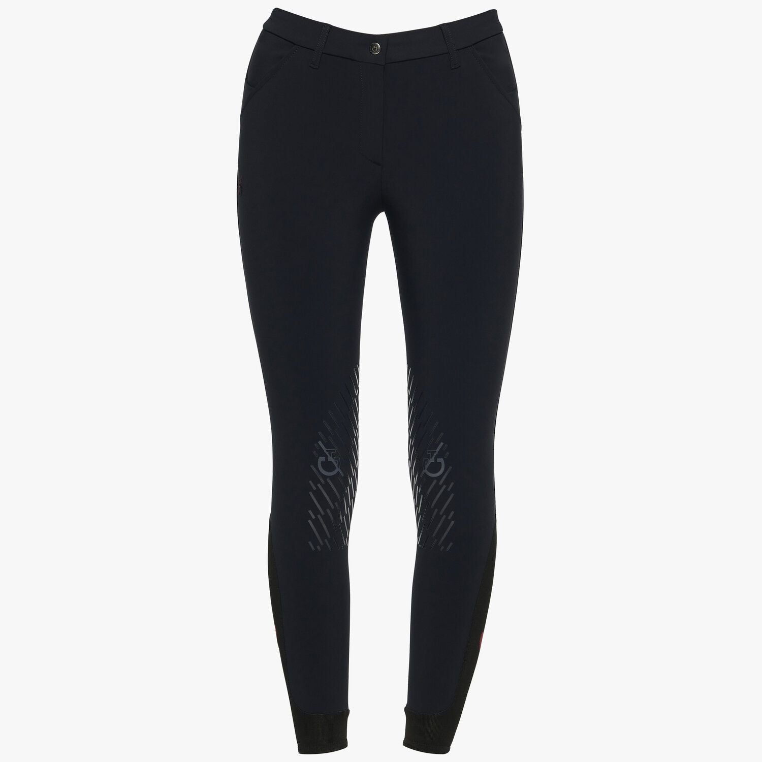 Diese Reithose ist eine perfekte Synthese aus Eleganz und Technik, denn sie verbindet markante ästhetische Details mit einer funktionellen Konstruktion, die Komfort und Sicherheit gewährleistet. Das Modell besteht aus atmungsaktivem Bi-Stretch-Gewebe mit dem Team-Logo an der Seite und den transparenten Silikongriffen am Knie, die für die Stabilität während des Ritts sorgen. Die Unterseite ist mit bequemen elastischen Socken unter den Stiefeln ausgestattet und mit dem Cavalleria Toscana-Logo in einer Kontrastfarbe verziert. Das Design wird durch den Riemen mit Gürtelschlaufen, funktionelle Taschen und den Verschluss mit Knopf und verdecktem Reißverschluss vervollständigt.