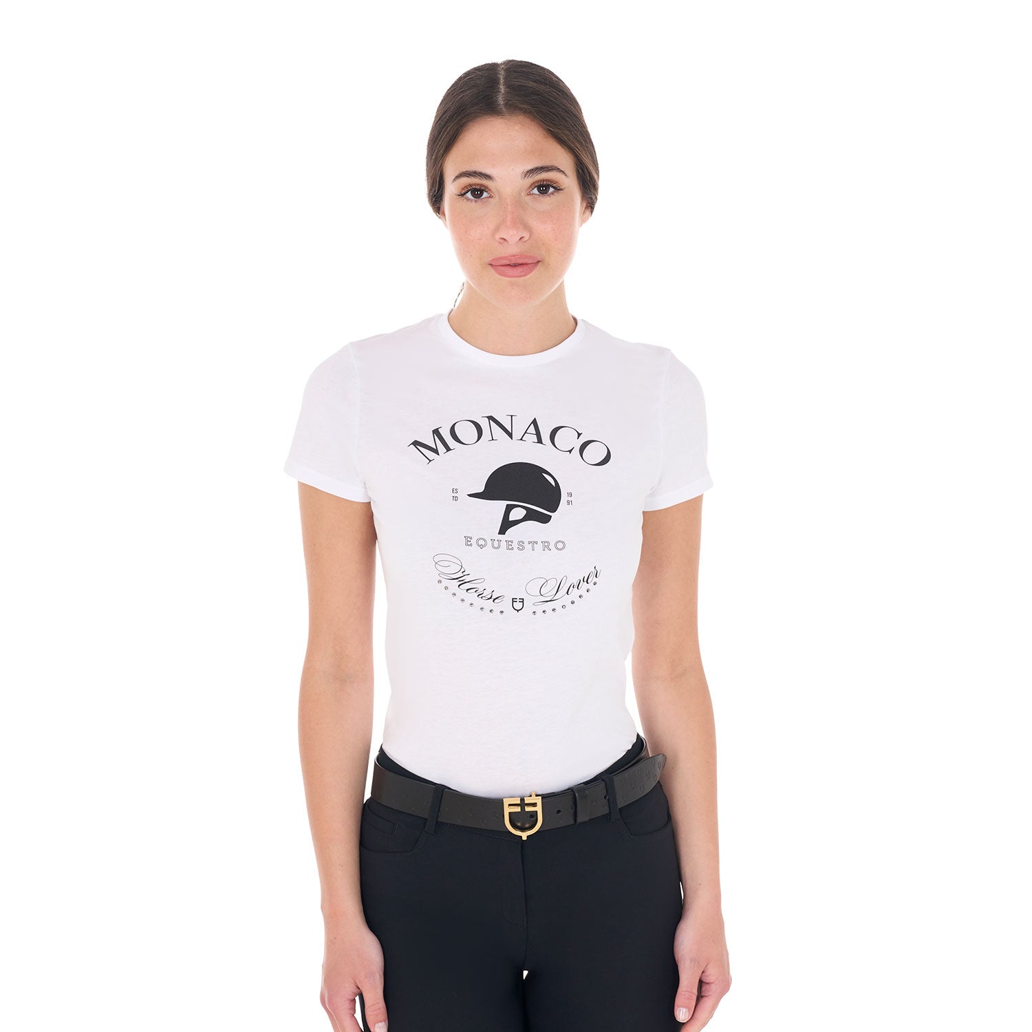 Das Monaco T-Shirt für Damen besticht durch seine feminine Slim-Fit-Passform, die die Silhouette elegant unterstreicht und gleichzeitig höchsten Tragekomfort bietet. Der dezente, aber dennoch ausdrucksstarke Print wird durch fein gearbeitete Strassapplikationen ergänzt, die das Licht bei jeder Bewegung auf besondere Weise reflektieren. Die verspielte „Class Lover“ Kursive setzt einen dynamischen Akzent und verleiht dem Shirt einen glamourösen Charakter. Ob casual oder chic – dieses T-Shirt verbindet Stil und Vielseitigkeit in einem.