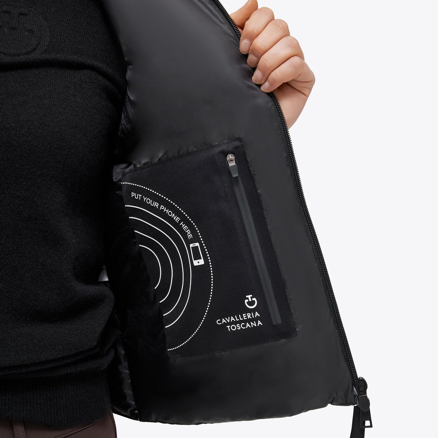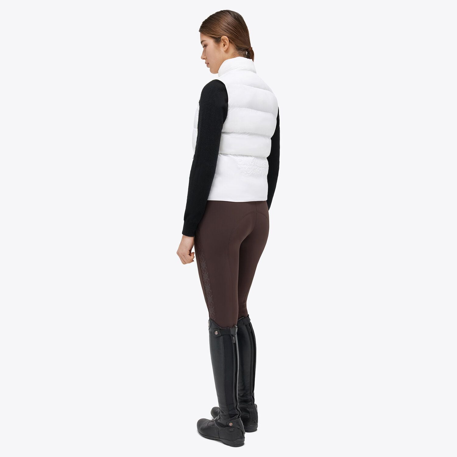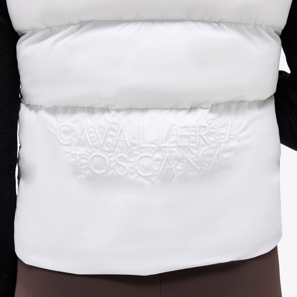Mit dieser femininen, ärmellosen Daunenjacke können Sie Ihren Freizeitstil aufpeppen. Die Stickerei auf der Rückseite verleiht ihr einen Hauch von Raffinesse, während das leichte Material für Komfort und Bewegungsfreiheit sorgt. Das Cavalleria Toscana-Logo ist dezent platziert und unterstreicht die zeitlose Eleganz des Kleidungsstücks.